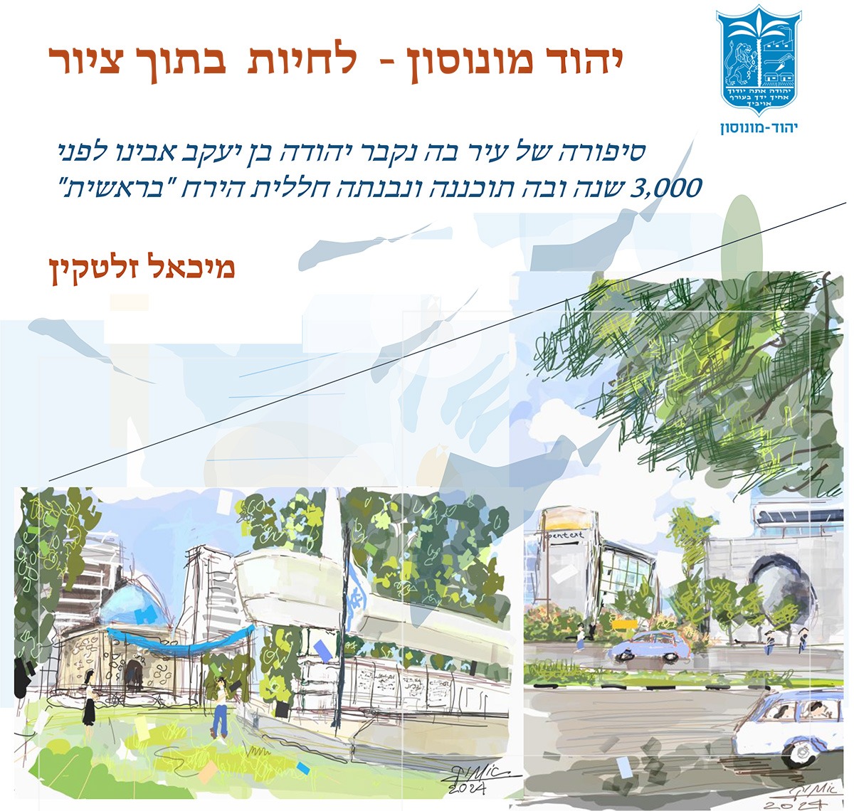 בספר זה מצויים מעל 50 ציורים המשקפים את מראה העיר יהוד – מונוסון וחייה השוקקים כפי שנראים בשנת 2024-25. הציורים נרשמו לאורך סיורים רגליים רבים לאורכה ולרוחבה של יהוד מונוסון. הפקת כמות כזו של ציורים תוך זמן קצר התאפשרה בזכות טכניקת הציור E –פרון אשר פיתחתי ושמשה אותי במסעות איור מקיפים של ישובים רבים בכל רחבי הארץ.